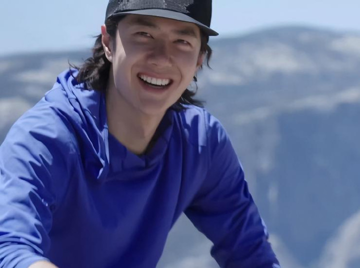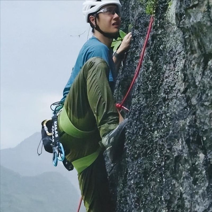 而是先看拍摄器材有没有被摔坏,接着安慰被吓到的工作人员,确认大家都没事后,他稍微调整了一下呼吸,又走回那面湿滑的岩壁前,继续攀爬。