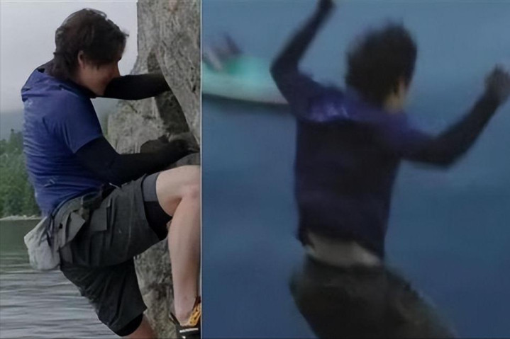 那天的阳朔,碧蓝的海水在阳光下闪闪发亮,王一博正在岩壁上专注攀爬,手指紧紧抓住岩石的凸起部分,突然,在接近4米的高度,他的手滑了一下,整个人瞬间失去平衡,朝着下方坠落。